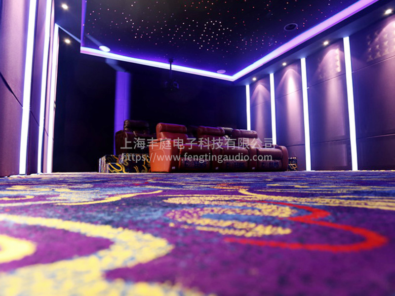 整個空間6*10,層高3.2米,面積在60平容積在200立方,考慮到多人觀影需求,設(shè)計了兩排沙發(fā),一共擺放了7張專業(yè)沙發(fā),在設(shè)計之處,考慮到了這7個位置都能滿足音視頻的效果,我們也做了15公分的抬高,這樣使后排的觀影更加的方便。