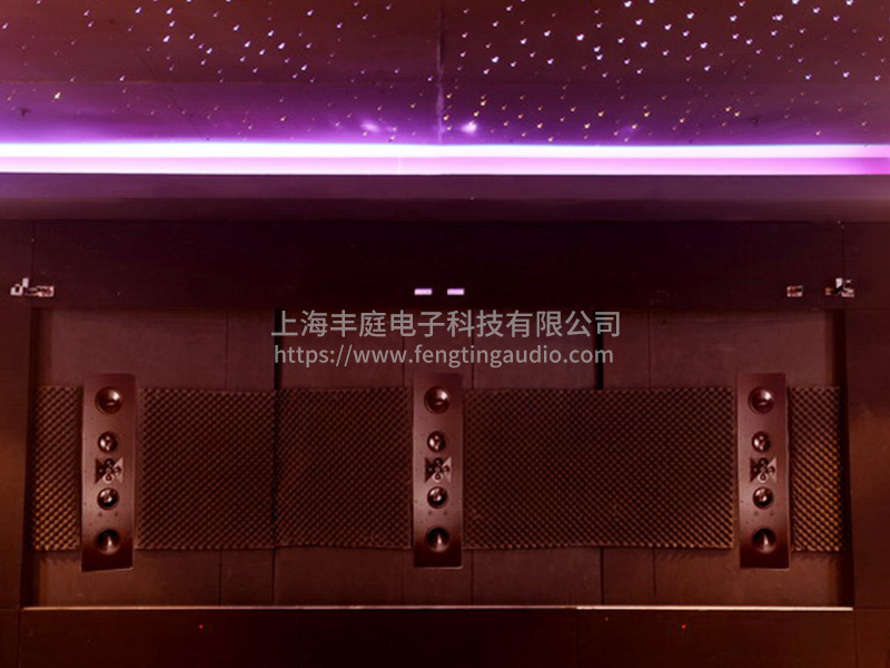 音頻采用全景聲7.3.4設(shè)計,考慮到低頻的體感,后排沙發(fā)單獨配置了一臺密閉炮,同時地臺按照木質(zhì)結(jié)構(gòu)打造,同時考慮到前后排的聲壓覆蓋,6.5米的試聽距離,影院前三采用的是james的定制安裝系列808be,寬廣的中高頻銜接,既保證高頻透過幕布的后的聲壓級,又讓聲音不刺耳耐聽,為了充分抵消駐波,前墻用了兩只12寸低音炮,配合后墻炮既滿足體感,也讓低頻更干凈。