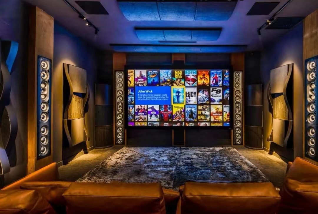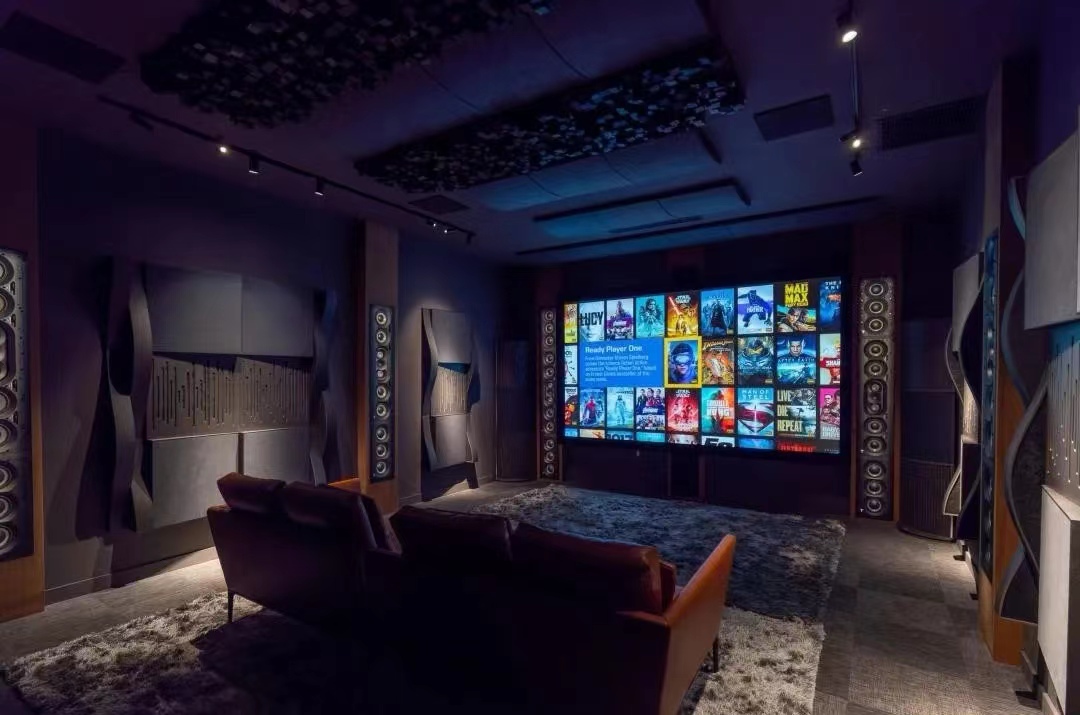 視聽室這里是采用了9.9.4家庭劇院視聽室,全套Focal 1000 Utopia系列組成的9.9.4全景聲烏托邦影院系統(tǒng),擁有表現(xiàn)力。該系統(tǒng)由9個1000 IWLCR Utopia、12個1000 IWSUB Utopia和4個 1000 ICLCR5吸頂式組成。前三聲道和側(cè)環(huán)繞、后環(huán)繞均選用1000IWLCR UTOPIA+1000IWSUB UTOPIA的組合。不僅具備了搭配組合的擴(kuò)展性,還具有強(qiáng)大、寬容的調(diào)校、調(diào)整功能。